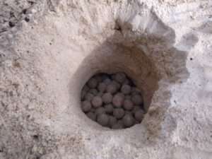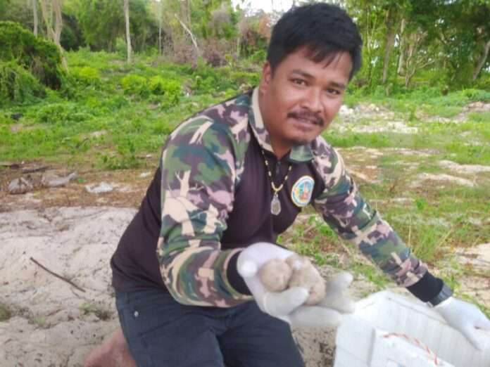 ผลสำรวจบริเวณโดยรอบ พบหลุมวางไข่ (รังที่ 2) เจ้าหน้าที่จึงทำการขุดหลุม พบไข่เต่า ทั้งหมด 148 ฟอง และได้ทำการเคลื่อนย้ายไข่เต่าไปยังจุดอนุบาลฯ สำหรับแม่เต่ากระ วัดขนาดรอยพายได้ 75 เซนติเมตร ความกว้างของหลุม 20 เซนติเมตร ความลึกของหลุม 43 เซนติเมตร ห่างจากน้ำทะเล 18 เมตร ทั้งนี้ เจ้าหน้าที่อุทยานแห่งชาติจะเฝ้าระวังและเก็บข้อมูลการวางไข่ของเต่ากระ ตลอด 24 ชั่วโมง ต่อไป