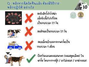 อย่างไรก็ตาม สถานการณ์การเกิดโรคล่าสุด ปัจจุบันพบใน 35 จังหวัด มีสัตว์ป่วย จำนวน 7,200 ตัว ตาย 53 ตัว และที่สำคัญสามารถควบคุมการระบาดให้อยู่วงจำกัด โดยตั้งแต่วันที่ 20 พ.ค.เป็นต้นมา ยังไม่มีรายงานการกระจายหรือการระบาดเพิ่มในจังหวัดใหม่