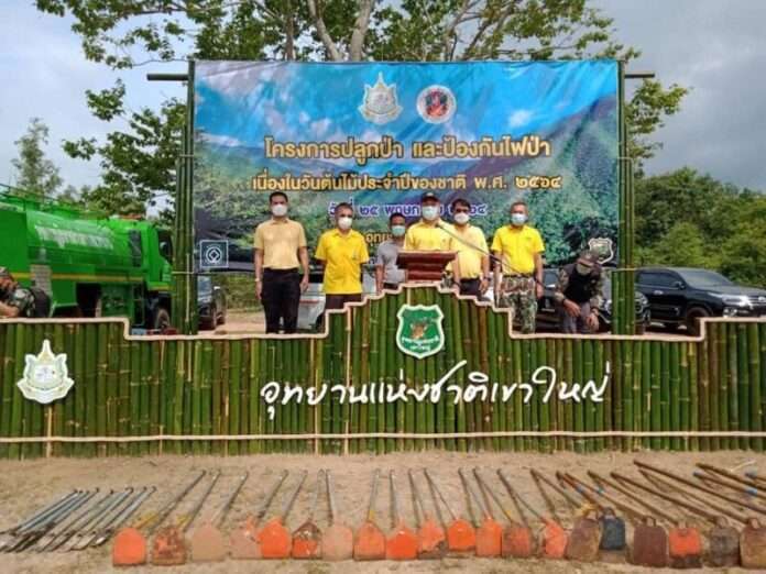 วันต้นไม้ประจำปีของชาติ พ.ศ. 2564 อุทยานแห่งชาติเขาใหญ่ร่วมกับภาคีเครือข่ายจัดกิจกรรม”โครงการปลูกป่าและป้องกันไฟป่า” บริเวณหน่วยพิทักษ์อุทยานแห่งชาติที่ ขญ.9 (ไสใหญ่) อำเภอนาดี จังหวัดปราจีนบุรี