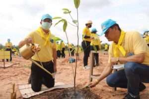 26 พ.ค. 64 ที่บริเวณพื้นที่สาธารณประโยชน์บ้านนาโพธิ์ หมู่ที่ 1 ตำบลนาโพธิ์ อำเภอกุดรัง จังหวัดมหาสารคาม นายเกียรติศักดิ์ ตรงศิริ ผู้ว่าราชการจังหวัดมหาสารคาม เป็นประธานเปิดกิจกรรมวันต้นไม้ประจำปีของชาติ พ.ศ.2564 โดยมี นายธัญญวัฒน์ ชาญพินิจ นายธรรมนูญ แก้วคำ นายวิวัฒน์ อินทร์ไทยวงศ์ รองผู้ว่าราชการจังหวัดมหาสารคาม หัวหน้าส่วนราชการ จิตอาสา 904 จิตอาสาพระราชทาน และประชาชนจิตอาสาเข้าร่วม ทั้งนี้ สำนักงานทรัพยากรธรรมชาติและสิ่งแวดล้อมจังหวัดมหาสารคาม ได้จัดกิจกรรมปลูกต้นไม้เพื่อเพิ่มพื้นที่สีเขียว พร้อมทั้งเป็นการส่งเสริมให้ทุกภาคส่วน ทั้งภาคราชการ ภาคเอกชน และประชาชน มีส่วนร่วมในการปลูกต้นไม้ มีความรักและหวงแหนทรัพยากรป่าไม้ โดยกิจกรรมปลูกต้นไม้ในวันนี้ได้รับการสนับสนุนพันธุ์กล้าไม้ จากสถานีเพาะชำกล้าไม้จังหวัดมหาสารคาม อาทิ ต้นยางนา พะยูง ตะแบก จำนวน 20,000 ต้น