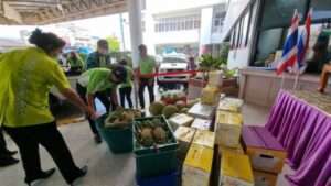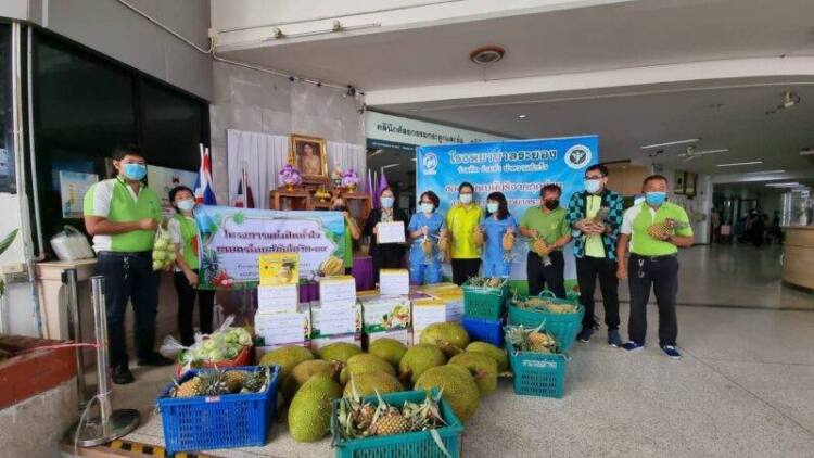 เมื่อวันที่ 2 มิ.ย.ที่บริเวณหน้า รพ.ระยอง อ.เมือง จ.ระยอง นางสาวสุพรรณษา สุขเทศน์ เกษตรจังหวัดระยอง พร้อมด้วยอมรา จิตติรบำรุง เกษตรอำเภอเมืองระยอง เจ้าหน้าที่จากสำนักงานเกษตรจังหวัดระยอง และสถาบันเกษตรกร นำผลไม้ของเกษตรกรชาวสวนผลไม้จังหวัดระยอง มี มังคุด เงาะ ลองกอง สับปะรด กล้วย ฝรั่ง และขนุน จำนวน 1,134 กิโลกรัม “ภายใต้โครงการแบ่งบันน้ำใจ เกษตรกรไทยสู้ภัยโควิด-19”ซึ่งมีตัวแทนจากสวนผลไม้ท่องเที่ยวเชิงเกษตร เกษตรกรชาวสวนผลไม้ และวิสาหกิจชุมชน กลุ่มเกษตรกรแปลงใหญ่ในพื้นที่อำเภอเมืองระยอง ร่วมสนับสนุนผลไม้ส่งมอบให้กับตัวแทนบุคลากรทางการแพทย์ เจ้าหน้าที่ รพ.ระยอง