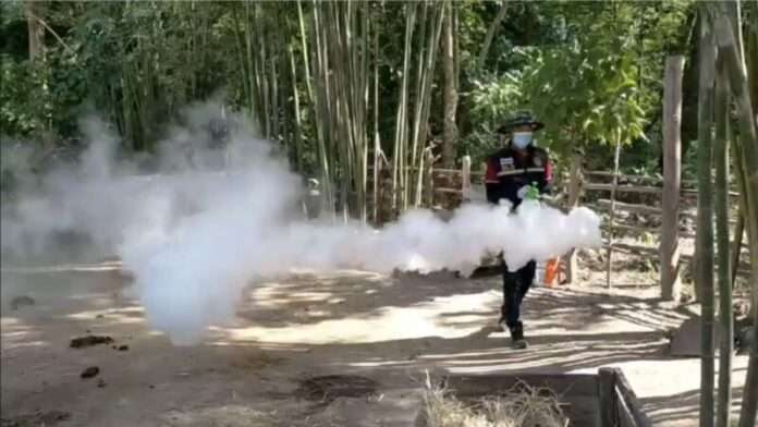 เมื่อวันที่ 2 มิถุนายน พ.ศ.2564 เวลา 15.00 น.บ้านบ่อสวก ม.1 ต.บ่อสวก อ.เมืองน่าน จ.น่าน โดยมีนายสัตวแพทย์อนุสรณ์ หอมขจร ปศุสัตว์จังหวัดน่าน พร้อมด้วยนายวรพล รุ่งสิทธิมงคล หัวหน้าด่านกักกันสัตว์น่าน จนท.ชุดเฉพาะกิจด่านกักกันสัตว์น่าน ร่วมกับสำนักงานปศุสัตว์อำเภอเมืองน่าน ดำเนินการพ่นน้ำยากำจัดแมลงพาหะ และให้คำแนะนำในการเฝ้าระวังและป้องกันโรคลัมปี สกิน (Lumpy Skin Disease : LSD) ให้แก่เกษตรกรจำนวน 18 ราย โคจำนวน 81 ตัว กระบือจำนวน 16 ตัว ในพื้นที่บ้านบ่อสวก ม.1 ต.บ่อสวก อ.เมืองน่าน จ.น่าน