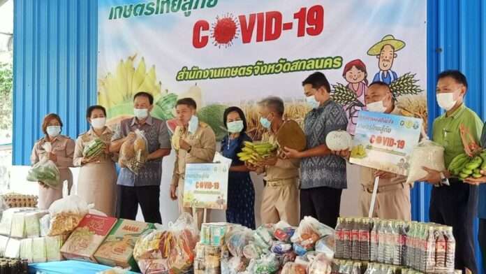 วันที่ 4 มิถุนายน 2564 ที่อาคารอเนกประสงค์ สำนักงานเกษตรจังหวัดสกลนคร นายมนต์สิทธิ์ ไพศาลธนวัฒน์ ผู้ว่าราชการจังหวัดสกลนคร เป็นประธานในการรับมอบสินค้าเกษตร และสินค้าอุปโภคบริโภคให้กับสำนักงานสาธารณสุขจังหวัดสกลนคร โดยมี นางสาวอนงค์ บังกระโทก รองนายแพทย์สาธารณสุขจังหวัดสกลนคร ผู้แทนรับมอบ ทั้งนี้สำนักงานเกษตรจังหวัดสกลนคร ได้จัดทำโครงการ “แบ่งปันน้ำใจ เกษตรไทย สู้ภัยโควิด-19” โดยรวบรวมสินค้าเกษตรจากเจ้าหน้าที่สำนักงานเกษตร กลุ่มเกษตรกร และเกษตรกรทั้ง 18 อำเภอของจังหวัดสกลนคร โดยแบ่งออกเป็นสินค้าเกษตร เช่น มะม่วง สับปะรด ขนุน มะละกอ กล้วย ฟักทอง และหน่อไม้ เป็นต้น สินค้า อุปโภคบริโภค เช่น ข้าวสาร ไข่ไก่ บะหมี่กึ่งสำเร็จรูป และน้ำผลไม้ รวมทั้งเงินสดจำนวนหนึ่ง เพื่อแบ่งปันสู่บุคลากรทางการแพทย์ และเจ้าหน้าที่ต่างๆ ที่ปฏิบัติหน้าที่ตามมาตรการเฝ้าระวัง ป้องกัน และควบคุมสถานการณ์การแพร่ ระบาดของโรคโควิด-19 และประชาชนที่ได้รับผลกระทบจากการแพร่ระบาดของโรคโควิด-19 เพื่อเป็นขวัญ กำลังใจ