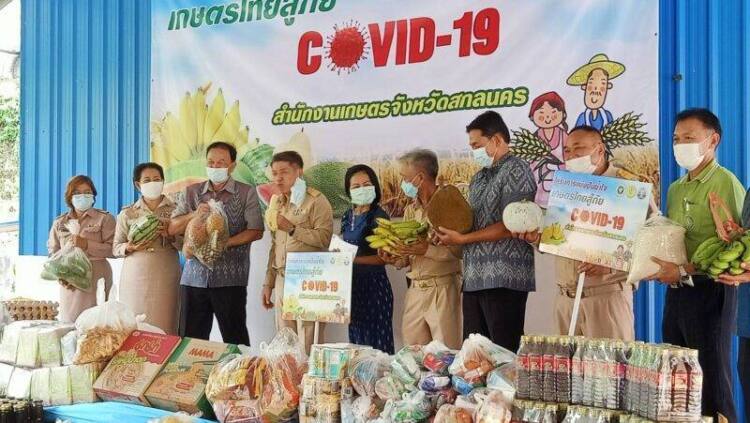 นายประยงค์ ภูดินทราย เกษตรจังหวัดสกลนคร กล่าวว่า โครงการ“แบ่งปันน้ำใจ เกษตรไทย สู้ ภัยโควิด-19” เป็นการแสดงออกถึงความห่วงใย และความเป็นอันหนึ่งอันเดียวกันของคนไทย เพื่อส่งต่อกำลังใจไปยังผู้เกี่ยวข้องทุกภาคส่วน รวมทั้งเป็นการประชาสัมพันธ์สินค้าเกษตรที่มีคุณภาพของจังหวัดสกลนคร ให้เป็นที่รู้จักอย่างกว้างขวาง และแพร่หลายมากยิ่งขึ้น โดยหลังจากกล่าวมอบแล้ว ท่านผู้ว่าราชการจังหวัดสกลนคร คุณมนต์สิทธิ์ ไพศาลธนวัฒน์ ก็ได้รับประทานกันแบบสดๆ นั่นก็คือกล้วยหอมลูกยาวขนาด 1 ฟุต หรือ 12 นิ้ว ให้กับผู้มาร่วมงานได้ชมว่า นอกจากความอร่อยแล้ว ยังการันติเรื่องความสะอาด คุณภาพดีอีกด้วย ซึ่งท่านก็ได้ให้แนวทางว่า ควรจะนำสินค้าทั้งหมดไปแจกจ่ายให้กับโรงพยาบาลต่างๆ และวัดที่จัดทำข้าวปลาอาหารแจกจ่ายบุคคลากรทางการแพทย์ สู้ภัยโควิด 19