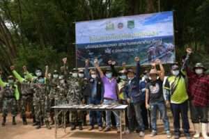 8มิ.ย.64/ นายอดิศักดิ์ ภูสิทธิ์วงศานุยุต หัวหน้าอุทยานแห่งชาติเขาใหญ่ พร้อมด้วยนายวัฒนะ โรจนเกษตร หัวหน้าเขตการจัดการอุทยานแห่งชาติเขาใหญ่ที่ 8 นายธีระยุทธ ทะนวนรัมย์ ผู้จัดการฝ่ายอำนวยการกลาง บริษัทไร่พีบี วัลเลย์ นายจิรวัฒน์ ธงศรี ผู้ใหญ่บ้านโศกน้อย หมู่ที่ 5 ตำบลพญาเย็น อำเภอปากช่อง จังหวัดนครราชสีมา ตลอดจนผู้นำชุมชน และราษฎรในพื้นที่บ้านโศกน้อย ได้ร่วมกันจัดกิจกรรมโครงการเก็บกู้กับดักสัตว์ป่า ในพื้นที่รอบอุทยานแห่งชาติเขาใหญ่ บริเวณป่ารอยต่ออุทยานแห่งชาติเขาใหญ่ ด้านหลังโครงการพีบี วัลเล่ย์ เขาใหญ่ไวน์เนอรี่