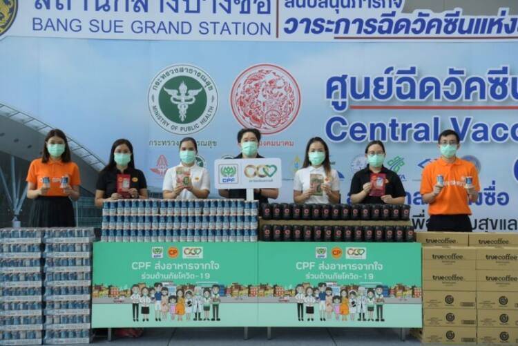 บริษัท เจริญโภคภัณฑ์อาหาร จำกัด (มหาชน) หรือซีพีเอฟ ผนึกกำลัง บริษัท ซีพี อินเตอร์เทรด จำกัด หรือซีพีไอ เดินหน้าส่งมอบผลิตภัณฑ์อาหารพร้อมทานและเครื่องดื่ม ในโครงการ “CPF ส่งอาหารจากใจ ร่วมต้านภัยโควิด-19” แก่ แพทย์หญิง มิ่งขวัญ วิชัยดิษฐ ผู้อำนวยการสถาบันโรคผิวหนัง กรมการแพทย์ ตามนโยบายเครือเจริญโภคภัณฑ์ เพื่อสนับสนุนการปฏิบัติงานของทีมแพทย์ พยาบาล เจ้าหน้าที่ และอาสาสมัคร ในการฉีดวัคซีนป้องกันโควิด-19 ให้แก่ประชาชน โดยมี นางพรรณินี นันทพานิช รองกรรมการผู้จัดการอาวุโส ซีพีเอฟ นายเทียนชัย จูพัฒนกุล ผู้ช่วยกรรมการผู้จัดการ ซีพีไอ และจิตอาสา ซีพีเอฟ ร่วมส่งมอบ เพื่อเป็นส่วนหนึ่งในการร่วมสร้างภูมิคุ้มกันหมู่ให้แก่ประเทศไทย ณ ศูนย์ฉีดวัคซีนกลางบางซื่อ สถานีกลางบางซื่อ