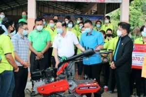 นายอาคม เติมพิทยาไพสิฐ รัฐมนตรีว่าการกระทรวงการคลังและประธานกรรมการธนาคารเพื่อการเกษตรและสหกรณ์การเกษตร (ธ.ก.ส.) ลงพื้นที่เยี่ยมชมกิจการลูกค้า Smart Farmer ของ ธ.ก.ส. “ไร่ทอง ออร์แกนิกส์ ฟาร์ม” บ้านทุ่ม อำเภอเมือง จังหวัดศรีสะเกษ ซึ่งเป็นแหล่งปลูกข้าวอินทรีย์ส่งออก เน้นนำนวัตกรรมทางการเกษตรมาใช้ลดต้นทุน เพิ่มผลผลิต และสร้างมูลค่าเพิ่ม อีกทั้งยังเป็นศูนย์เรียนรู้ ชุมชนด้านเกษตรอินทรีย์ นอกจากนี้ ยังได้ลงพื้นที่ติดตามการดำเนินงานของวิสาหกิจชมชนกลุ่มผู้ผลิตดอกเบญจมาศแปลงใหญ่ บ้านตาติด ตำบลโนนผึ้ง อำเภอวารินชำราบ จังหวัดอุบลราชธานี ซึ่งชาวบ้านรวมตัวกันกว่า 40 ครัวเรือน ปลูกดอกไม้สด อาทิ ดอกเบญจมาศ ดอกคัตเตอร์ มากาเร็ต ดาวเรือง เป็นต้น ส่งจำหน่ายมากที่สุดของจังหวัด อีกทั้งยังแปรรูปเป็นดอกไม้อบแห้งอีกด้วย ซึ่ง ธ.ก.ส. ร่วมสนับสนุนด้านเงินทุนหมุนเวียนและองค์ความรู้ในการยกระดับการดำเนินงานของลูกค้า โดยมีนายสุรชัย รัศมี รองผู้จัดการ ธ.ก.ส. ผู้บริหารและพนักงานในพื้นที่ให้การต้อนรับ เมื่อวันที่ 26 มิถุนายน 2564