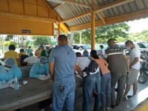 พ.ต.อ.ไพฑูรย์ ปาปะคัง ผกก.สภ.บ้านฉาง กล่าวว่า สว.ส.ผลออกมาเป็นโควิด นำตัวไปรักษาที่ รพ.สมเด็จพระนางเจ้าสิริกิติ์ อ.สัตหีบเมื่อวันที่ 27 มิ.ย. และได้มี สว.อำนวยการสภ.บ้านฉางก็ มีอาการเป็นโควิดอีกคนเช่นกัน รถ รพ.กรุงเทพระยอง มารับตัวไปรักษา รพ.กรุงเทพระยองวันนี้ 28 มิ.ย. เวลา 17.30 น. และมีการกักตัวตำรวจอีก 11 นายที่เกี่ยวข้องใกล้ชิดบุคคลทั้งสอง กักตัวที่ เบย์ธารารีสอร์ท…ส่วนตำรวจรายอื่นก็ตรวจผลยังไม่ออก…ตอนนี้ก็ปิดห้องสืบสวนสภ.บ้านฉาง เพื่อทำความสะอาด