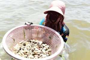 “มัทนา สุดสิ้น” วัย 40 ปี อาชีพงมหอย กล่าวว่า เธอและเพื่อนๆ มางมหอยทุกวัน มีทั้งหอยแครง หอยกะปุก หอยเสียบ ขายได้วันละ 300 กว่าบาท ที่นี่มีป่าชายเลนสมบูรณ์ ธรรมชาติก็ดี ตอนนี้มีป่าชายเลนคลุมแวดล้