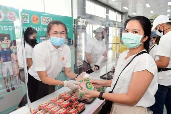 บริษัท เจริญโภคภัณฑ์อาหาร จำกัด (มหาชน) หรือ ซีพีเอฟ ในฐานะผู้ผลิตอาหารชั้นนำระดับโลก ได้นำความเชี่ยวชาญด้านอาหาร เดินหน้าโครงการ “CPF ส่งอาหารจากใจ ร่วมต้านภัยโควิด-19” พร้อมผนึกกำลังบริษัทในเครือ ซีพี เมจิ และ ซีพี อินเตอร์เทรด ระดมความช่วยเหลือและสนับสนุนอาหารคุณภาพ นม และเครื่องดื่ม ให้แก่บุคลากรทางการแพทย์ เจ้าหน้าที่ และอาสาสมัครที่ปฏิบัติงานในศูนย์ฉีดวัคซีนกลางบางซื่อ เพื่อช่วยลดภาระการจัดเตรียมอาหาร รวมถึงการจัดบูธแจกอาหารฟรีให้แก่ประชาชนผู้ฉีดวัคซีน เพื่อส่งต่อความห่วงใยและแทนคำขอบคุณในการร่วมสร้างภูมิคุ้มกันหมู่ให้กับประเทศ