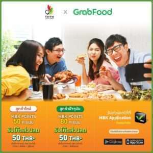 พิเศษแค่มี MBK Application สามารถแลกใช้ 50 MBK POINTS สำหรับลูกค้าใหม่ และ 80 MBK POINTS สำหรับลูกค้าปัจจุบัน รับโค้ดส่วนลดจาก Grab Food ได้เพิ่มอีก 50 บาททันที เมื่อสั่งอาหารจากร้านที่ร่ วมรายการ 300 บาทขึ้นไป (สิทธิ์มีจำนวนจำกัด เงื่อนไขเป็นไปตามที่บริษั ทกำหนด) ตั้งแต่วันนี้ – 31 สิงหาคม 2564