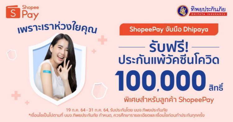 ในสถานการณ์การแพร่ระบาดของโควิด-19 อีกหนึ่งหนทางในการช่วยป้องกันและบรรเทาการแพร่ระบาดได้ คือ การฉีดวัคซีนในกลุ่มประชากรชาวไทยให้ได้เยอะที่สุด ‘ShopeePay (ช้อปปี้เพย์)’ ผู้ให้บริการด้านการชำระเงินผ่าน Mobile Wallet ชั้นนำจาก SeaMoney จึงได้ร่วมมือกับ ‘ทิพยประกันภัย’ ส่งความห่วงใยแก่ผู้ใช้งาน ShopeePay ด้วยการมอบประกันภัยคุ้มครองการแพ้วัคซีนโควิด-19 ฟรี! 1 แสนสิทธิ์ พร้อมวงเงินคุ้มครองสูงสุดถึง 1 แสนบาท[1]