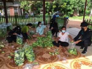 จากนั้น ร.อ.เตชทัต เฉลิมจิตต์ ผบ.ร้อย ทพ.1207 พร้อมกำลังพลจิตอาสาฯได้นำพืชผักสวนครัวที่ช่วยเก็บเกี่ยวและรับซื้อมาจากชาวบ้านนำไปมอบให้ ที่สำนักปฎิบัติธรรมรวมญาติเจริญโพธิธรรม ต.ฟากห้วย อ.อรัญประเทศ จ.สระแก้ว ซึ่งได้รับการยกฐานะจากศูนย์ดูแลโควิดชุมชน มาเป็นโรงพยาบาลสนาม สามารถรองรับผู้ป่วยโควิดได้จำนวน100-200 เตียง เพื่อนำไปประกอบอาหารเลี้ยงผู้ป่วยโควิดที่มารักษาตัวในโรงพยาบาลสนามแห่งนี้ นับเป็นความช่วยเหลือเป็นทวีคูณ 2เด้ง คือได้ช่วยทั้งเกษตรกรชาวบ้านเก็บเกี่ยวผลผลิต และรับซื้อผลผลิต เด้งที่2ได้นำพืชผักสวนครัวต่างๆมาช่วยเหลือป่วยโควิดที่โรงพยาบาลสนาม ให้มีอาหารการกินที่ปรุงสุก ทั้งสดและสะอาดอีกด้วย