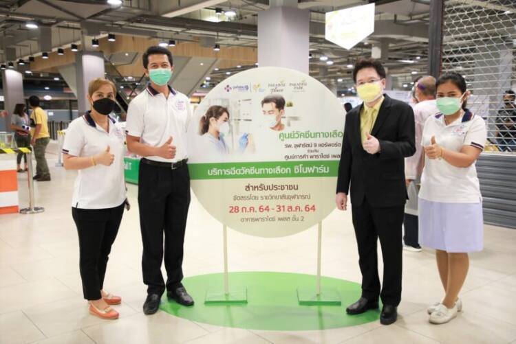 พาราไดซ์ เพลส ศูนย์การค้าเครือเอ็ม บี เค ร่วมเป็นส่วนหนึ่งให้ประชาชนเข้าถึงวัคซีนได้เร็วอย่างมีประสิทธิภาพ ผนึก โรงพยาบาลจุฬารัตน์ 9 แอร์พอร์ต เปิดพื้นที่เป็นศูนย์วัคซีนทางเลือก “ซิโนฟาร์ม” ให้แก่ประชาชนที่ลงทะเบียนผ่าน “ราชวิทยาลัยจุฬาภรณ์” ตั้งแต่วันนี้ – 31 สิงหาคม