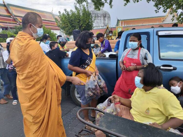 วันที่ 4 ส.ค.64 ผู้สื่อข่าวรายงานว่า ที่หน้าวัดพระมหาธาตุวรมหาวิหาร ถนนราชดำเนิน ต.ในเมือง อ.เมืองนครศรีธรรมราช พระมหาอารยนันต์ อานันโท เจ้าอาวาสวัดเขาพระทอง พร้อมคณะกรรมการวัดฯ นำมุงคุดจำนวน 2000 กิโลกรัม ที่รับซื้อช่วยเหลือจาเกษตรกรในพื้นที่ อ.ชะอวด และใกล้เคียง ที่ได้รับความเดือดร้อนเรื่องราคาตกต่ำ ซึ่งได้รับความสนใจจากชาวบ้าน เข้าแถวรับมังคุดคนละ 1 ถุง โดยใช้เวลาไม่ถึง 1 ชั่วโมง มังคุดจำนวน 2000 กิโลกรัมหมดเกลี้ยง