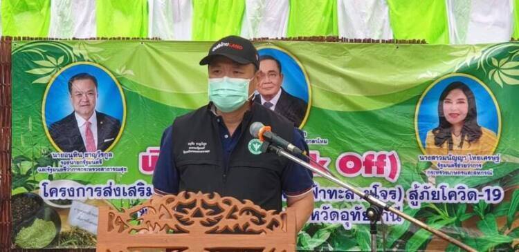นางสาวมนัญญา ไทยเศรษฐ์ รัฐมนตรีช่วยว่าการกระทรวงเกษตรและสหกรณ์ กล่าวว่า ได้สั่งการให้กรมส่งเสริมสหกรณ์เปิดรับสหกรณ์ที่สนใจร่วมโครงการส่งเสริมปลูกสมุนไพรฟ้าทะลายโจร ขณะนี้มีสหกรณ์ใน 8 จังหวัดแจ้งความประสงค์จะเข้าร่วมโครงการดังกล่าว โดยวางแผนพื้นที่ปลูกฟ้าทะลายโจรเกือบ 100 ไร่ ซึ่งจังหวัดอุทัยธานี เป็นจังหวัดนำร่อง พื้นที่รวม 10 ไร่ และวันนี้ได้จัดกิจกรรมเปิดตัวครั้งแรกที่สหกรณ์ปฏิรูปที่ดินระบำ จำกัด อำเภอลานสัก จำนวน 4 ไร่ ส่วนในระยะต่อไป จะมีการขยายพื้นที่ปลูกฟ้าทะลายโจรในสถาบันเกษตรกร เพิ่มขึ้นไม่น้อยกว่า 1,000 ไร่ ให้ครอบคลุมทุกพื้นที่ในทุกภูมิภาค ซึ่งมีสถาบันเกษตรกรแจ้งความประสงค์เข้าร่วมโครงการแล้ว 52 สหกรณ์ใน 11 จังหวัด