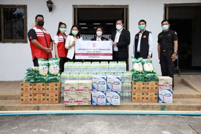นางสาวณิชาภา มุสิโก (ที่ 3 จากซ้าย) ผู้ช่วยกรรมการผู้จัดการสายสนับสนุน บริษัท แอพเพิล ออโต้ ออคชั่น (ไทยแลนด์) จำกัด ศูนย์ประมูลรถยนต์มือสองครบวงจรได้มาตรฐานสากล ธุรกิจในเครือ เอ็ม บี เค พร้อมด้วย นายพงศ์วิกรานต์ วิศรุตโชติกุล (ที่ 5 จากซ้าย) ผู้อำนวยการฝ่ายบริหารความปลอดภัย บริษัท เอ็ม บี เค สมาร์ท ฟอร์ซ จำกัด มอบเครื่องอุปโภคบริโภคและของใช้ ได้แก่ น้ำดื่ม MBK ข้าวสารมาบุญครอง หม้อหุงข้าวไฟฟ้า ให้ศูนย์พักคอย เพื่อส่งต่อ เขตบางนาแห่งที่สอง ที่สโมสรกรมอุตุนิยมวิทยา โดยมี นางสาวโศรยา วัธชนะ (ที่ 4 จากซ้าย) ผู้อำนวยการเขตบางนา เป็นผู้รับมอบ ณ สโมสรกรมอุตุนิยมวิทยา ถนนสุขุมวิท เขตบางนา เมื่อเร็ว ๆ นี้