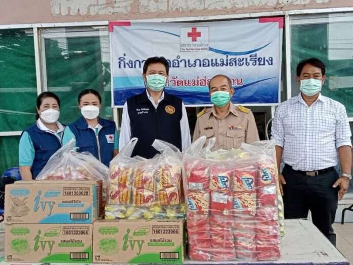 นายอำเภอแม่สะเรียง นายกกิ่งกาชาด รับมอบสิ่งของธารน้ำใจหลั่งไหลมาด้วยความห่วงใย พร้อมนำทีมมอบถุงยังชีพให้แก่ผู้สัมผัสเสี่ยงสูง ที่อยู่ระหว่างกักตัว