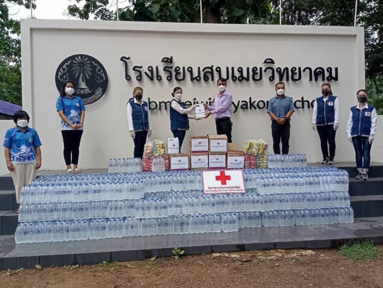 (14 ก.ย. 64) นางธิติพร จินดาหลวง นายกเหล่ากาชาดจังหวัดแม่ฮ่องสอน มอบหมายให้ นางวิลาวัณย์ คัดเชียงเเสน นายกกิ่งกาชาดอำเภอแม่สะเรียง พร้อมกรรมการและสมาชิกกิ่งกาชาดอำเภอแม่สะเรียง ลงพื้นที่มอบสิ่งของอุปโภคบริโภคให้โรงเรียนสบเมยวิทยาคมและศูนย์แยกกักโรคชุมชน (Community Isolation; CI) ณ รร.สบเมยวิทยาคม อ.สบเมย จ.แม่ฮ่องสอน พร้อมได้รับการสนับสนุนจากภาคประชาชน คุณวิทยา หวานซึ้ง ร้าน ช.การบัญชีไทย เเละโรงเลื่อยทุ่งเเล้ง ประกอบด้วย น้ำดื่ม จำนวน 286 เเพค ผงซักฟอก 24 ถุง น้ำยาล้างห้องน้ำ 48 ขวด เจลเเอลกอฮอล์จำนวน 20 ขวด เเละน้ำยาฆ่าเชื้อจำนวน 2 เเกลลอน โดยมี นายสุทัศน์ เอี่ยมแสง ผู้อำนวยการโรงเรียนสบเมยวิทยาคม เป็นผู้รับมอบ