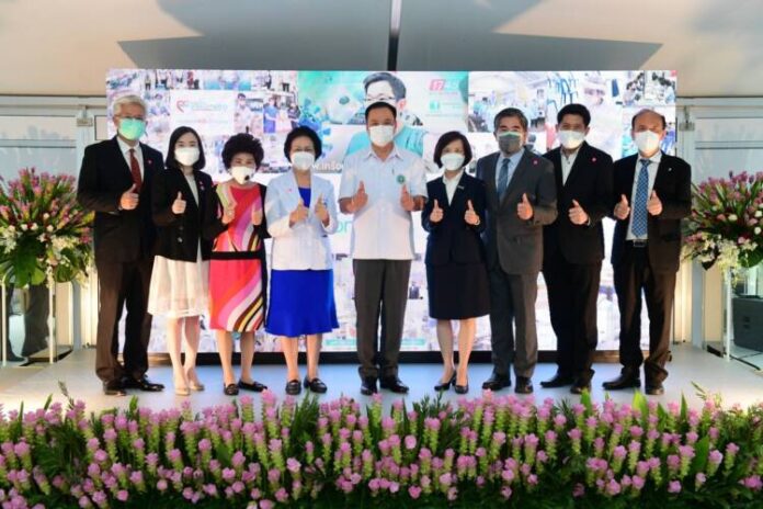 นายอนุทิน ชาญวีรกูล รองนายกรัฐมนตรีและรัฐมนตรีว่าการกระทรวงสาธารณสุข เป็นประธานในพิธี มอบหนังสือขอบคุณให้แก่ผู้ร่วมก่อตั้งและสนับสนุน โรงพยาบาลสนามครบวงจร (End-to-End) ภายใต้โครงการ “ลมหายใจเดียวกัน” เพื่อช่วยรักษาผู้ป่วยติดเชื้อไวรัสโควิด-19 ซึ่งเครือเจริญโภคภัณฑ์ และ บริษัท เจริญโภคภัณฑ์อาหาร จำกัด (มหาชน) หรือ ซีพีเอฟ ร่วมสนับสนุนโรงพยาบาลสนามแห่งนี้ โดยมี นายนพปฎล เดชอุดม ประธานคณะผู้บริหารด้านความยั่งยืนองค์กร เครือซีพี พร้อมด้วย นางสาวพิมลรัตน์ รีพัฒนาวิจิตรกุล ประธานผู้บริหารทรัพยากรบุคคล เครือซีพีและซีพีเอฟ เป็นผู้แทนบริษัทฯ รับมอบ ร่วมด้วย แพทย์หญิง เจรียง จันทรกมล ประธานบริษัทในเครือโรงพยาบาลบางประกอก และ โรงพยาบาลเครือปิยะเวท นายแพทย์วิทิต อรรถเวชกุล ประธานเจ้าหน้าที่บริหารและกรรมการผู้จัดการ บริษัท โรงพยาบาลปิยะเวท จำกัด (มหาชน)