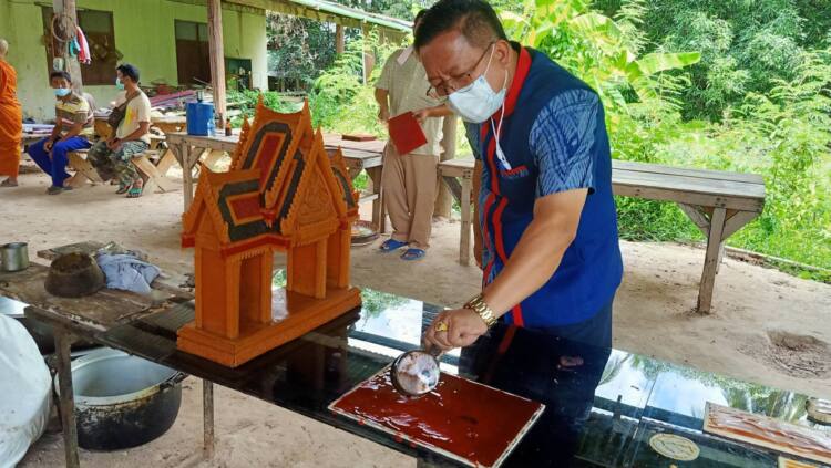 นายก อบจ.สกลนคร ส่งเสริมและอนุรักษ์ช่างทำปราสาทผึ้ง ในเทศกาลออกพรรษา แม้ปีนี้จะไม่ได้จัดแต่ก็สืบสานภูมิปัญญาปราชญ์ชาวบ้าน