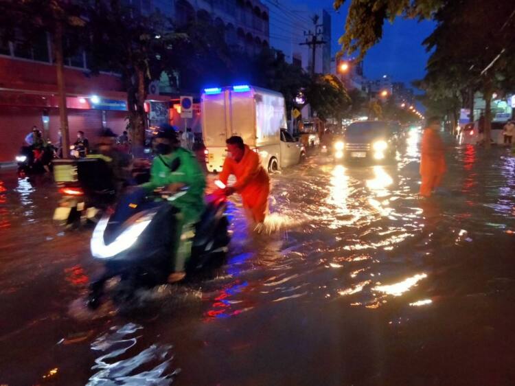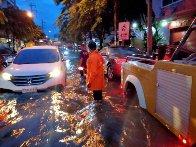 เวลา 18.30 น. : เจ้าหน้าที่กองโรงงานช่างกล สำนักการคลัง อำนวยการจราจรและช่วยเหลือประชาชน เนื่องจากฝนตกหนักและมีน้ำท่วมขังในพื้นที่เขตสาทร ณ ถนนจันทน์ ช่วงปากซอยจันทร์ 39 เขตสาทร