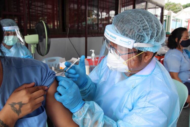 23 ก.ย.64 ที่เรือนจำจังหวัดมหาสารคาม นายเกียรติศักดิ์ ตรงศิริ ผวจ.มหาสารคามประธานคณะกรรมการโรคติดต่อจังหวัดมหาสารคาม เข้าตรวจเยี่ยมการฉีดวัคซีน ชิโนแวค เข็มที่ 1 แก่ผู้ต้องขังทั้งชายและหญิง รวมจำนวน 1,884 คน โดยมีทีมงานสาธารณสุขจังหวัดมหาสารคาม และโรงพยาบาลมหาสารคาม ซึ่งมีนางพรศรี ตรงศิริ นายกเหล่ากาชาด จ.มหาสารคาม และคณะกรรมการเหล่ากาชาดจังหวัดฯ พร้อมด้วย นพ.ภาคี ทรัพย์พิพัฒน์ นายแพทย์สาธารณสุข จ.มหาสารคาม นพ.ภาคภูมิ มโนสิทธิศักดิ์ ผอ.รพ.มหาสารคาม เข้าร่วมพร้อมให้กำลังใจแก่ผู้ต้องขังการฉีดวัคซีนเข็มแรกในครั้งนี้ด้วย โดยการฉีดจะเป็นสูตรวัคซีนไขว้ “ซิโนแวค-แอสตร้าเซนเนก้า” เป็นสูตรหลักฉีดห่างกัน 3 สัปดาห์ เพื่อให้เกิดภูมิคุ้มกันหมู่ในเวลาอันรวดเร็ว โดยจากการฉีดที่ผ่านมาพบอาการไม่พึงประสงค์ ไม่แตกต่างจากการฉีดวัคซีนตัวอื่น และเป็นการป้องกันเชิงรุกไม่ให้เกิดการแพร่ระบาดของเชื้อไวรัสโคโรนา 2019 ภายในเรือนจำ ให้ผู้ต้องขังได้รับวัคซีนอย่างเสมอภาคและเท่าเทียมกับบุคคลภายนอก ป้องกันการเสียชีวิตที่อาจเพิ่มขึ้นหากเกิดการแพร่ระบาดในเรือนจำ