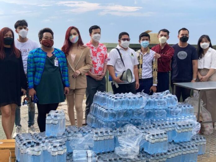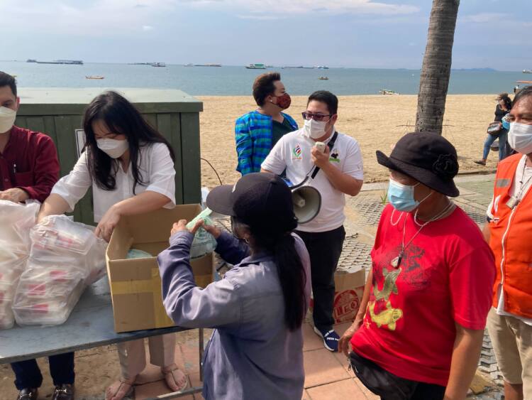 ได้ร่วมกันนำสิ่งของมาช่วยเหลือผู้ได้รับผลกระทบจากการแพร่ระบาดของโรคติดเชื้อไวรัสโควิด-19 เป็นข้าวกล่องปรุงสุกจำนวน 500 กล่อง น้ำดื่ม 1,000 ขวด หน้ากากอนามัย 1,000 ห่อ แอลกอฮอล์สเปรย์ 1,000 ขวด โดยใช้สถานที่บริเวณริมชายหาดเมืองพัทยา (ตรงข้ามสถานีตำรวจภูธรเมืองพัทยา) ซึ่งเป็นพื้นที่เปิดโล่งเป็นสถานที่ในการแจกจ่ายสิ่งของช่วยเหลือประชาชนในเขตเมืองพัทยา โดยพบว่า มีประชาชน รวมทั้งชาวต่างชาติทยอยเดินทางมารับแจกสิ่งของกันตามมาตรการการป้องกันการแพร่ระบาดของโรคติดต่อ