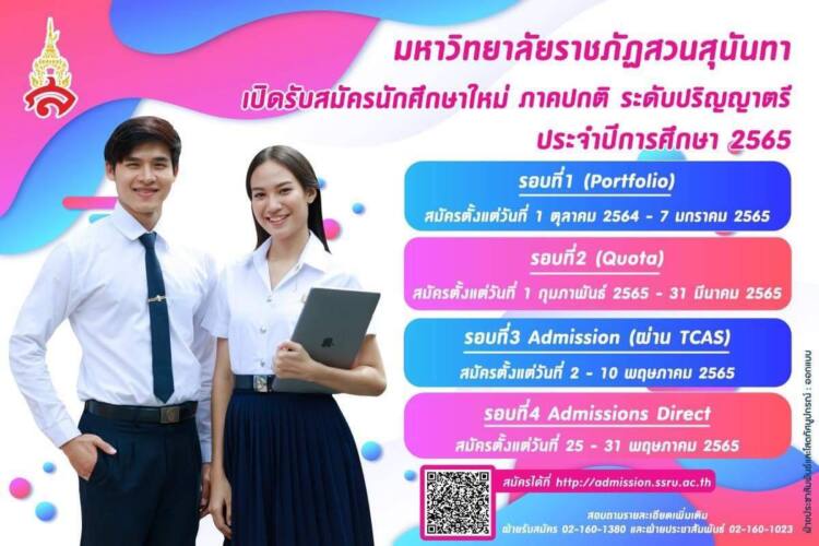 สวนสุนันทาเปิดรับสมัครนักศึกษาใหม่ ระดับปริญญาตรี ภาคปกติ รอบที่ 1 ประจำปีการศึกษา 2565