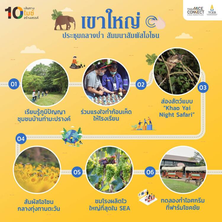พักกายใจ พักชีวิตวนลูป แล้วหนีไปสูดอากาศบริสุทธิ์ให้เต็มปอดกับเส้นทาง “เขาใหญ่ : ประชุมกลางป่า สัมมนาสัมผัสโอโซน” 1 ใน 10 เส้นทางไมซ์สร้างสรรค์ที่นำองค์กรต่าง ๆ ไปสัมผัสบรรยากาศเขาใหญ่ให้ธรรมชาติได้บำบัดท่ามกลางภูเขาและผืนป่าที่กว้างใหญ่ไปพร้อมกับการทำกิจกรรมที่สามารถเลือกสรรกิจกรรมไมซ์ได้เองตามต้องการ