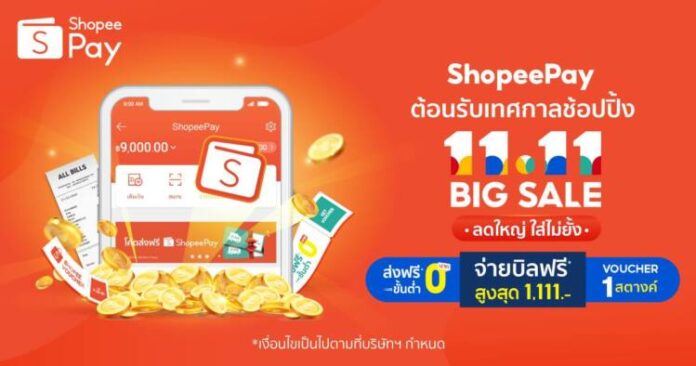 ห้ามพลาดกับโปรโมชันและความคุ้มค่า เมื่อใช้จ่ายผ่าน ShopeePay บนแอปพลิเคชัน Shopee ในช่วงมหกรรมช้อปปิ้ง ‘Shopee 11.11 Big Sale’ ดูรายละเอียดเพิ่มเติมได้ที่ https://www.facebook.com/ShopeePayTH