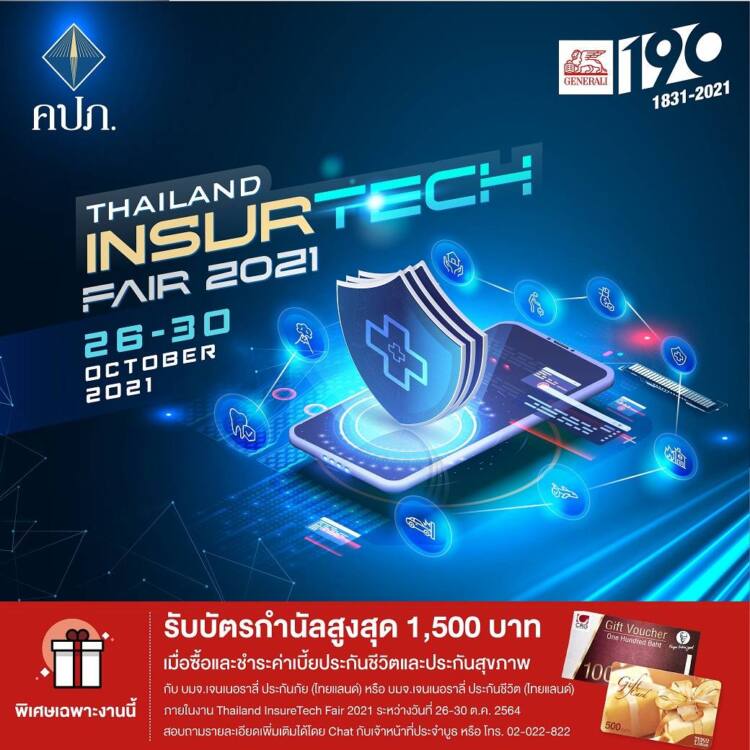 เจนเนอราลี่ ไทยแลนด์ เชิญร่วมงาน Thailand Insurtech Fair 2021 ที่จัดขึ้นโดยสำนักงานคณะกรรมการกำกับและส่งเสริมการประกอบธุรกิจประกันภัย (คปภ.) ในรูปแบบของ Virtual ครั้งแรกในประเทศไทย พร้อมพบกับผลิตภัณฑ์ประกันชีวิตและประกันสุขภาพจากเจนเนอราลี่พร้อมโปรโมชั่นสุดพิเศษ อาทิ “ประกันชีวิต 3 แผน 3 สไตล์” รับเงินคืนทุกปีและสามารถนำลดหย่อนภาษีได้ ได้แก่ Gen Aom Sub6 จ่ายสั้น 6 ปีจบ คุ้มครองนาน 15 ปี Gen Max7 ไม่มีคำถามสุขภาพ รับทุกโรค ชำระเบี้ยประกัน 7 ปี คุ้มครองนาน 15 ปี และ Gen Life Plus 10” ชำระเบี้ย 10 ปี รับเงินคืนตลอด 20 ปี คุ้มครอง 20 ปี เป็นต้น รวมถึงประกันสุขภาพ “Gen Health Lump Sum” ประกันสุขภาพเหมาจ่ายสูงสุดหลักล้าน ครอบคลุมกว่า 100 อาการ ไม่ต้องสำรองจ่าย และจ่ายเพิ่มอีกนิดเพื่อความอุ่นใจอีกหลานแสนกับแผนประกันมะเร็ง Gen Cancer Care และประกันโรคร้ายแรง Gen CI One Stop