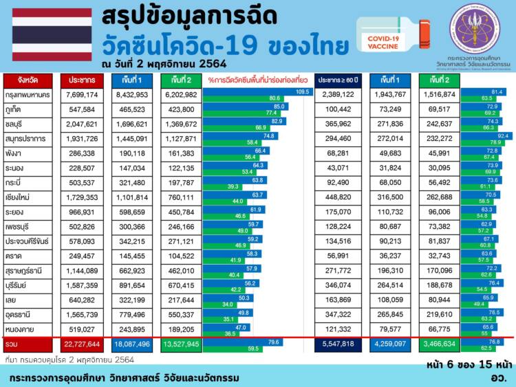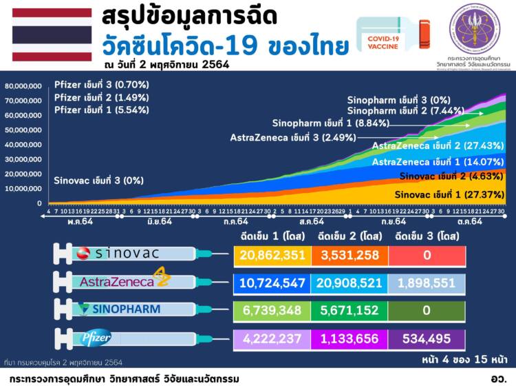 - ข้อมูลการฉีดวัคซีนล่าสุดของประเทศไทย ณ วันที่ 2 พฤศจิกายน 2564