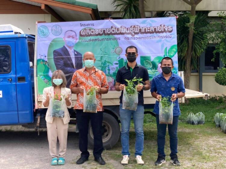 3.โครงการผลิตขยายต้นพันธุ์ฟ้าทะลายโจร เพื่อส่งเสริมการใช้พืชสมุนไพรฟ้าทะลายโจรเป็นยาสมุนไพรประจำบ้านในการป้องกันและรักษาอาการติดเชื้อไวรัสโควิด-19 โดยดำเนินการผลิตต้นพันธุ์ฟ้าทะลายโจร รวมจำนวน 2,000,000 ต้น สนับสนุนให้แก่เกษตรกรและประชาชนทั่วไป โดยเมื่อวันที่ 16 ตุลาคม 2564 ดร.เฉลิมชัย ศรีอ่อน รัฐมนตรีว่าการกระทรวงเกษตรและสหกรณ์ ได้เป็นประธานในพิธีมอบต้นพันธุ์ฟ้าทะลายโจร จำนวน 1 แสนต้น แก่ผู้แทนเกษตรกร ณ จังหวัดสงขลา สำหรับในภาพรวมปัจจุบันได้ดำเนินการแจกจ่ายแล้ว 830,137 ต้น และมีต้นพันธุ์พร้อมแจกจ่ายอีก 1,028,863 ต้น