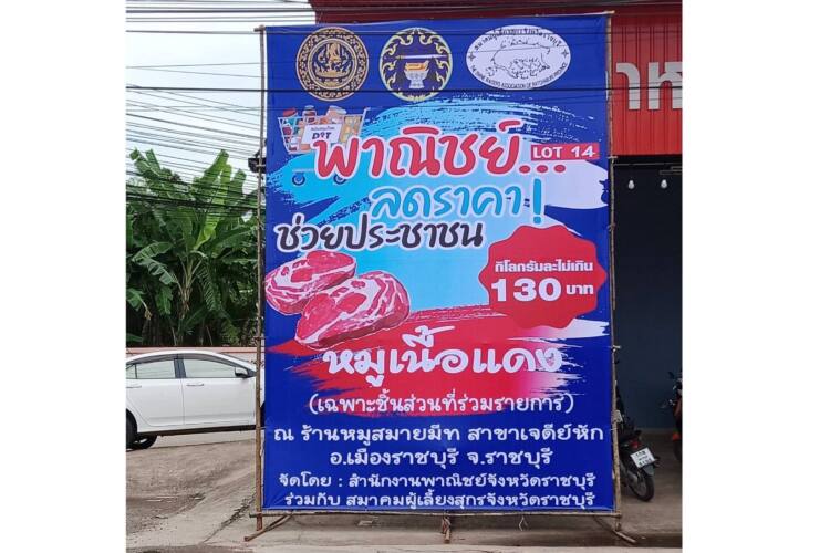 นายสิทธิพันธ์ ธนาเกียรติภิญโญ นายกสมาคมผู้เลี้ยงสุกรภาคตะวันออกเฉียงเหนือ กล่าวถึงสถานการณ์ราคาเนื้อสุกรขายปลีกที่ปรับขึ้นว่า เป็นไปตามกลไกตลาดที่แท้จริง จากความต้องการบริโภคที่เพิ่มขึ้นของผู้บริโภคภายในประเทศและนักท่องเที่ยงที่ทยอยเข้ามาท่องเที่ยว หลังจากไทยเปิดประเทศเมื่อต้นเดือนที่ผ่านมา สวนทางกับปริมาณสุกรที่ออกสู่ตลาดที่ลดลงกว่า 30% จากผลกระทบของโรค PRRS ในสุกร ทำให้สุกรแม่พันธุ์และสุกรขุนเสียหายภาวะโรค และเกษตรกรส่วนใหญ่ยังคงชะลอการเข้าเลี้ยงสุกรเพื่อรอดูสถานการณ์ หลังจากต้องแบกรับภาระขาดทุนมานานกว่า 3 ปี จากกลไกตลาดที่เกิดขึ้น ภาครัฐโดยท่านรองนายกรัฐมนตรีและรัฐมนตรีว่าการกระทรวงพาณิชย์ จุรินทร์ ลักษณวิศิษฏ์ ได้มีนโยบายในการแก้ปัญหาอย่างเร่งด่วน ด้วยการจัดโครงการ “พาณิชย์…ลดราคา! ช่วยประชาชน” จำหน่ายหมูเนื้อแดงกิโลกรัมละไม่เกิน 130 บาท ที่คาดว่าจะเปิด 600 จุดทั่วประเทศ โดยเริ่มจำหน่ายแล้วที่สำนักงานพาณิชย์จังหวัดปทุมธานี เชียงใหม่ แม่ฮ่องสอน ขอนแก่น ยะลา ราชบุรี ฯลฯ และจะดำเนินการครอบคลุมทุกพื้นที่ทั่วประเทศต่อไป รวมถึงโครงการอาหารจานด่วนที่เปิดให้ร้านค้าทั่วไปในตลาดสดและร้านอาหารธงฟ้าจำหน่ายอาหารราคาจานละ 30-35 บาท และในห้างจานละไม่เกิน 35-40 บาท เพื่อช่วยค่าครองชีพผู้บริโภค