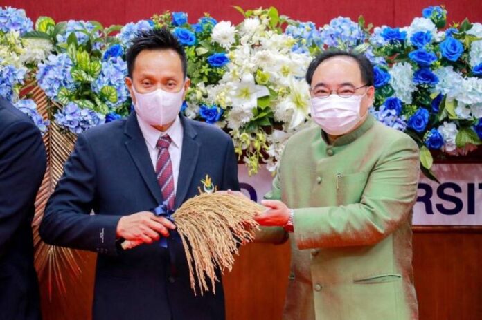 วันพุธที่ 1 ธันวาคม 2564 มหาวิทยาลัยแม่โจ้ ร่วมกับ สำนักงานพัฒนาการวิจัยการเกษตร (องค์การมหาชน) หรือ สวก. จัดพิธีส่งมอบเมล็ดพันธุ์ข้าว “หอมแม่โจ้ 9” ให้แก่ สมาคมผู้รวบรวมและจำหน่ายเมล็ดพันธุ์ข้าว พร้อมเร่งเดินหน้าขยายผลในการนำเมล็ดพันธุ์ข้าวส่งต่อถึงมือเกษตรกรผู้เพาะปลูก โดยได้รับเกียรติจาก รองศาสตราจารย์ดร. วีระพล ทองมา อธิการบดีมหาวิทยาลัยแม่โจ้ เป็นประธานในพิธี โอกาสนี้ นางสาวศิริกร วิวรวงษ์ รองผู้อำนวยการสำนักงานพัฒนาการวิจัยการเกษตร กล่าวถึงความเป็นมาในการสนับสนุนการปรับปรุงพันธุ์ข้าว และคุณนิทัศน์ เจริญธรรมรักษา ประธานที่ปรึกษาสมาคมฯ กล่าวถึงแนวทางการนำเมล็ดพันธุ์ไปขยายพันธุ์เพื่อจำหน่ายให้แก่เกษตรกร ณ ห้องประชุมสภามหาวิทยาลัย ชั้น 5 อาคารสำนักงานมหาวิทยาลัย มหาวิทยาลัยแม่โจ้