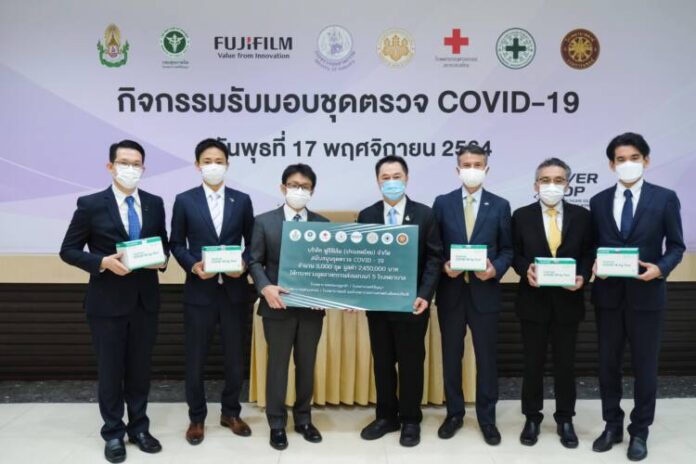 นายกอบชัย สังสิทธิสวัสดิ์ ปลัดกระทรวงอุตสาหกรรม เป็นประธานรับมอบชุดตรวจหาแอนติเจนของเชื้อโควิด-19 จากฟูจิฟิล์ม (FUJIFILM COVID-19 Ag Test) สำหรับใช้โดยบุคลากรทางการแพทย์ จำนวน 5,000 ชุด มูลค่า 2,450,000 บาท จากบริษัท ฟูจิฟิล์ม (ประเทศไทย) จำกัด ที่มุ่งมั่นช่วยเหลือสังคมไทยภายใต้แนวคิด Never Stop เพื่อนำไปแจกจ่ายให้แก่โรงพยาบาลสำหรับใช้ตรวจคัดกรองผู้ติดเชื้อและผู้ปฎิบัติงานของภาคอุตสาหกรรมในสถานการณ์การแพร่ระบาดของไวรัสโควิด-19 และทำการส่งมอบชุดตรวจให้แก่ผู้แทนจากโรงพยาบาลพระมงกุฎเกล้า โรงพยาบาลศรีธัญญา โรงพยาบาลจุฬาลงกรณ์ โรงพยาบาลสงฆ์ และโรงพยาบาลธรรมศาสตร์เฉลิมพระเกียรติ โดยได้รับเกียรติจาก มร. ยูอิจิ โอบะ ท่านรองหัวหน้าคณะผู้แทนทางการทูต, อัครราชทูต สถานเอกอัครราชทูตญี่ปุ่นประจำประเทศไทย พร้อมด้วย มร. โซ มารูโอะ กรรมการผู้จัดการ บริษัท ฟูจิฟิล์ม (ประเทศไทย) จำกัด เข้าร่วมส่งมอบ วันนี้ ณ ห้องโถงชั้น 1 อาคารสำนักงานปลัดกระทรวงอุตสาหกรรม