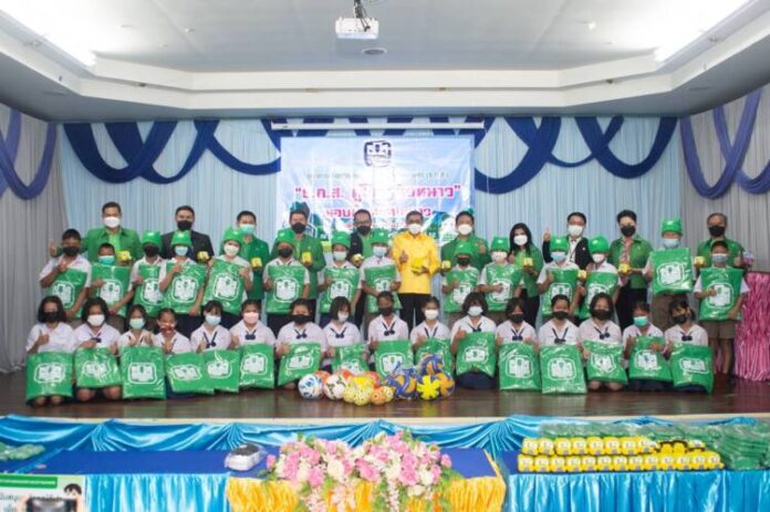 นายภูมิ เกลียวศิริกุล ผู้อำนวยการฝ่ายกิจการสาขาภาคเหนือตอนล่าง ธนาคารเพื่อการเกษตรและสหกรณ์การเกษตร (ธ.ก.ส.)นางพรพรหม เหล่ากิจไพศาล ผู้ช่วยผู้อำนวยการสำนักประชาสัมพันธ์พร้อมด้วยผู้บริหารและพนักงาน ร่วมกิจกรรมมอบทุนสนับสนุนโครงการปลูกความรู้ด้านการเกษตรเพื่ออาหารกลางวันในโรงเรียน ประจำปีบัญชี 2564 ซึ่ง ธ.ก.ส. ดำเนินการต่อเนื่องมาเป็นปีที่ 12 เพื่อสนับสนุนให้นักเรียนนำความรู้ด้านการเกษตรที่ได้รับไปปฏิบัติใช้จริงในชีวิตประจำวัน ช่วยลดค่าใช้จ่าย และสามารถพัฒนาเป็นอาชีพเพื่อสร้างรายได้ รวมถึงยังสนับสนุนให้โรงเรียน บ้าน และชุมชน ร่วมผลิตอาหารปลอดภัยเพื่อประโยชน์ทั้งด้านสุขภาพ สร้างเศรษฐกิจชุมชน และความยั่งยืนด้านสิ่งแวดล้อม พร้อมทั้งมอบอุปกรณ์กีฬา รวมจำนวน 30,000 บาท ในโอกาสเดียวกันนี้ได้มอบผ้าห่มและหมวกไหมพรม ภายใต้โครงการ “ธ.ก.ส. คู่ใจ สู้ภัยหนาว” เพื่อส่งมอบความห่วงใยจากใจ ธ.ก.ส. ไปสู่ผู้ประสบภัยหนาว จำนวน 500 ชุด ให้กับนักเรียนและคนในชุมชน ณ โรงเรียนชุมชนบ้านเมืองการุ้งมิตรภาพที่ 52 บ้านเมืองการุ้ง ตำบลเมืองการุ้ง และองค์การบริหารส่วนตำบลคอกควาย อำเภอบ้านไร่ จังหวัดอุทัยธานี เมื่อวันที่ 23 ธันวาคม 2564