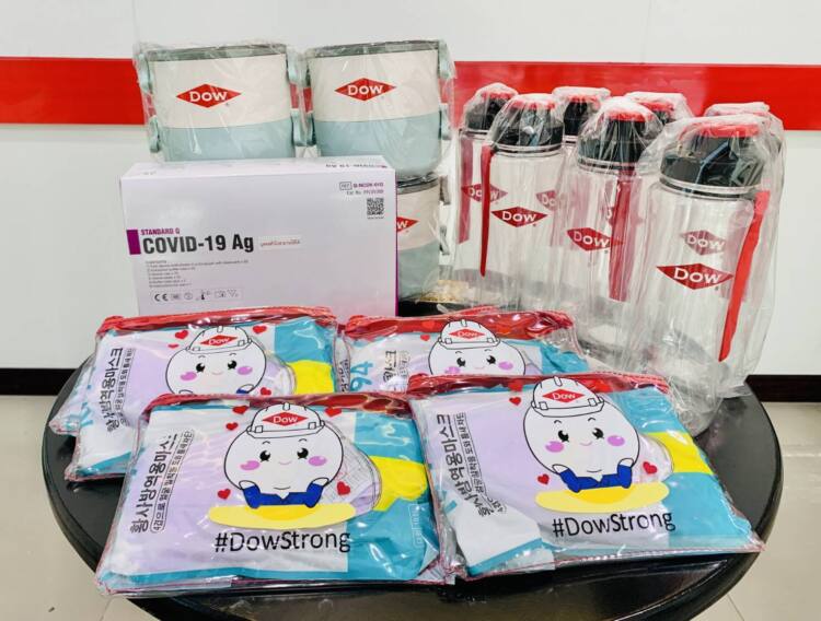 วันที่8 มกราคม 65 นางสาวดวงฤทัย ศรีสราญนนท์ ผจก.แผนกชุมชนสัมพันธ์ และ นางสาววชิราพร โพธิพงษ์ ผจก.แผนกกิจการสัมพันธ์ ตัวแทนกลุ่มบริษัท ดาว ประเทศไทย (Dow) มอบชุด Dow Care ประกอบด้วยกระเป๋า เจลแอลกอฮอล์ และหน้ากากอนามัย พร้อมกับกระบอกน้ำและปิ่นโตข้าว เป็นของรางวัลสนับสนุนการจัดกิจกรรมในวันเด็กแห่งชาติประจำปีให้กับเทศบาล องค์การบริหารส่วนตำบล หน่วยงานภาครัฐ โรงเรียน และชุมชนในจังหวัดระยองกว่า 30 แห่ง นอกจากนี้ ยังได้มอบชุดตรวจ Antigen Test Kit (ATK) เพื่อใช้ในการตรวจคัดกรองโควิด-19 ให้กับสำนักงานการนิคมอุตสาหกรรมมาบตาพุด รวมมูลค่ากว่า 300,000 บาท ให้กับผู้บริหารและผู้นำชุมชนในพื้นที่อำเภอบ้านฉางและเทศบาลเมืองมาบตาพุด จ.ระยอง