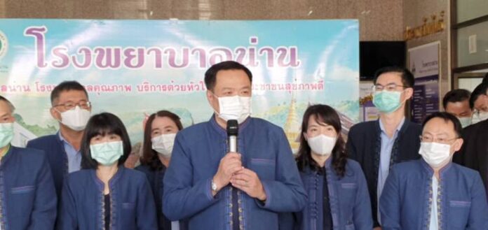 ที่จังหวัดน่านเป็นจังหวัดแรกในภาคเหนือที่ดำเนินการโครงการ “คนไทยสิทธิ์ รักษาทุกที่” เริ่มตั้งแต่ปีใหม่ 2565 เป็นต้นมา มีประชาชนมาใช้บริการจำนวนมาก หน่วยงานสังกัดกระทรวงสาธารณสุขในจังหวัดน่าน ได้เข้าไปส่งเสริมชุมชนน้ำเกี๋ยน อำเภอภูเพียง ส่งเสริมผลิตภัณฑ์ชุมชน ภายใต้แบรนด์ “ชีวาร์ “และ”ชีวาน่า” ซึ่งได้เป็นผู้ผลิต OEM ส่งไปยังอีกกว่า 20 แบรนด์ ขณะที่ผู้อำนวยการโรงพยาบาลน่านได้รายงานว่า โรงพยาบาลน่านเริ่มให้บริการ “คนไทยทุกสิทธิ รักษาทุกที่” ตั้งแต่วันที่ 1 มกราคม 2565 ที่ผ่านมา และเป็นโรงพยาบาลหลักในการดูแลผู้ป่วยโควิดในพื้นที่ ขณะนี้กำลังเริ่มดำเนินการก่อสร้างอาคาร 3 หลัง คืออาคารอุบัติเหตุฉุกเฉิน อาคารจอดรถ และอาคารรังสีและห้องผ่าตัด งบประมาณก่อสร้าง 891 ล้าน สนับสนุนโดยมูลนิธิธนาคารกสิกรไทย