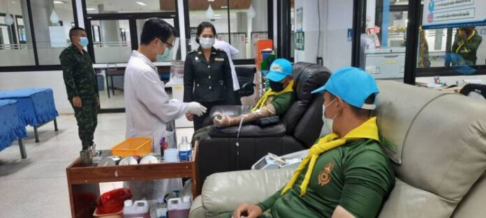 เมื่อวันที่ 24 มกราคม 2565 เวลา 10.00 น. ที่ ธนาคารเลือด รพ.น่าน อ.เมืองน่าน จ.น่าน โดยมี พล.ต.คณิศร อาสมะ ผบ.มทบ.38 จัดกำลังพล จิตอาสา ร่วมบริจาคโลหิต เพื่อช่วยเหลือผู้ป่วยในช่วงวิกฤตโควิด 19 จากสถานการณ์การระบาดของโรค COVID-19 ซึ่งเป็นไปตามนโยบายของกองทัพบก “ทหารเป็นที่พึ่งของประชาชนในทุกโอกาส” บริจาคได้ จำนวน 10 นาย ได้ปริมาณโลหิต ทั้งหมด 4,500 ซีซี