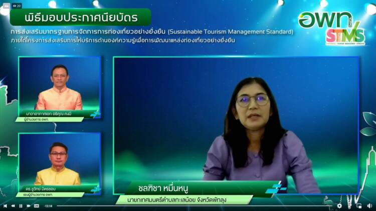 อย่างไรก็ตาม อพท. ได้จัดพิธีมอบประกาศนียบัตร การส่งเสริมมาตรฐานการจัดการการท่องเที่ยวอย่างยั่งยืน ผ่านสื่ออิเล็กทรอนิกส์ (ออนไลน์) ในวันที่ 25 มกราคม 2565 ส่งผลให้ปัจจุบัน อพท. มีองค์กรที่เป็นภาคีเครือข่าย และปฏิบัติได้ตามเกณฑ์มาตรฐาน STMS แล้วจำนวนถึง 70 องค์กร