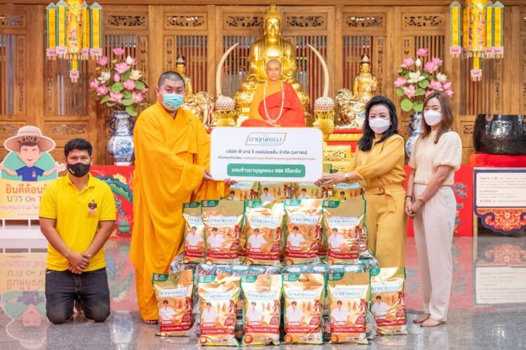 นางปรียานุช นันทโชติ ที่ปรึกษากรรมการผู้จัดการใหญ่ด้านเงินทุนและภาษี (ที่ 3 จากซ้าย) พร้อมด้วยนางสาวมิญช์ภัส รุจิสันติหิรัญ ผู้ช่วยผู้อำนวยการฝ่ายขายผู้ประกอบการ (ที่ 4 จากซ้าย) บริษัท พี อาร์ จี คอร์ปอเรชั่น จำกัด (มหาชน) ผู้บริหารกลุ่มธุรกิจในเครือข้าวมาบุญครอง มอบข้าวสารหอมมะลิแท้ 100% ชั้นดี จำนวน 888 กิโลกรัม สนับสนุนแคมเปญ “ขาลรับความสุข ด้วยข้าวถุงทอง ดูดทรัพย์รับความเฮง” โดยเป็นกิจกรรมเชิญชวนทำบุญต้อนรับเทศกาลตรุษจีน ด้วยข้าวถุงสีทองมงคล จากข้าวขาวหอมมะลิใหม่ 100% ภายในงานได้รับเกียรติจาก พระภาณุวัฒน์ เลิศประเสริฐพันธ์ ผู้ช่วยเจ้าอาวาส (ที่ 2 จากซ้าย) วัดบรมราชากาญจนาภิเษกอนุสรณ์ เป็นผู้รับมอบ ณ วัดบรมราชากาญจนาภิเษกอนุสรณ์ เมื่อเร็ว ๆ นี้