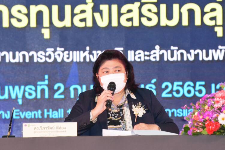 ดร.วิภารัตน์ ดีอ่อง ผู้อำนวยการ วช. กล่าวว่า สำนักงานการวิจัยแห่งชาติ (วช.) ภายใต้กระทรวงการอุดมศึกษา วิทยาศาสตร์ วิจัยและนวัตกรรม ได้ให้ความสำคัญในการลงทุนด้านทรัพยากรบุคคลและสถาบันความรู้ ซึ่งการส่งเสริมและสนับสนุนการพัฒนาบุคลากร ด้านการวิจัยและนวัตกรรม เป็นหนึ่งใน 7 ภารกิจของ วช. ที่มีความสำคัญในการเพิ่มขีดความสามารถในการแข่งขันของประเทศในระยะยาว โดยการพัฒนากำลังคนให้มีความรู้และทักษะที่สอดคล้องกับการทำงานและการดำรงชีวิตในศตวรรษที่ 21 ตลอดจนการสร้างความรู้จากการวิจัยในสาขาที่ประเทศไทยมีศักยภาพ เพื่อผลิตผลงานวิจัยที่มีประโยชน์ ทั้งด้านเศรษฐกิจ สังคม และวงวิชาการของประเทศ รวมถึงการส่งเสริมและสนับสนุนให้มีนักวิจัยระดับปริญญาโทและปริญญาเอกของไทยที่มีคุณภาพสูง นอกจากนี้ยังช่วยส่งเสริมให้เกิดเครือข่ายความร่วมมือระหว่างนักวิจัย และสถาบันการศึกษาทั้งในและต่างประเทศ