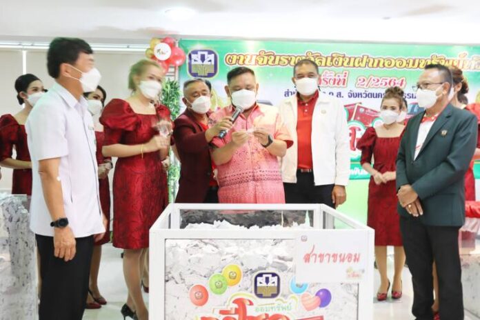 เมื่อเวลา 09.00 น.วันที่ 18 ก.พ.2565 ที่ห้องประชุม สำนักงาน ธ.ก.ส. จังหวัดนครศรีธรรมราช นายไกรศร วิศิษฎ์วงศ์ ผู้ว่าราชการจังหวัดนครศรีธรรมราช เป็นประธานจับรางวัลเงินฝากออมทรัพย์ทวีโชค ครั้งที่ 2 ปีบัญชี 2564 ซึ่งธนาคารเพื่อการเกษตรและสหกรณ์การเกษตร หรือ ธ.ก.ส.จัดขึ้น เพื่อขอบคุณลูกค้าที่ให้การสนับสนุนฝากเงินฝากออมทรัพย์ทวีโชค (เล่มแดง) กับ ธ.ก.ส.มาอย่างต่อเนื่อง โดยมีนายโกมล นวลรอด ผู้อำนวยการธนาคารเพื่อการเกษตรและสหกรณ์จังหวัดนครศรีธรรมราช หัวหน้าส่วนราชการ ผู้แทนหน่วยงาน สื่อมวลชน และผู้แทนจาก ธ.ก.ส.สาขาต่าง ๆของจังหวัดนครนครศรีธรรมราชร่วมเป็นสักขีพยาน