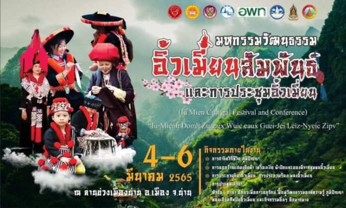 จ.น่าน เชิญเที่ยวงาน มหกรรมวัฒนธรรมสัมพันธ์และการประชุมอิ้วเมี่ยนนานาชาติ ครั้งที่ 4 วันที่ 4-6 มีนาคม2565 ณ ข่วงเทศบาลเมืองน่าน อำเภอเมืองน่าน จังหวัดน่าน เวลา 09.00 – 21.00 น.ภายในงานพบกับ