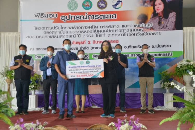 ซึ่งในโครงการนี้ได้รับเงินจากรัฐบาลมาในปี 2564 จำนวนกว่า 1,600 ล้านบาท โดยสหกรณ์การเกษตรที่เข้าร่วมโครงการจะสมทบเงินเข้ามาเพิ่มร้อยละ 10 เพื่อที่จะไปสร้างอุปกรณ์การตลาดต่างๆ ว่าจะเป็นพวกโรงสี โรงคลุม ลานตาก เครื่องอบลดความชื้น หรือเครื่องไม้เครื่องมือที่ใช้เกี่ยวกับการแปรรูปผลผลิตเพี่อเพิ่มมูลค่าและระบบการขนส่งสินค้าเพื่อจำหน่ายสู่ตลาด ซึ่งจังหวัดเชียงรายได้รับการจัดสรรงบประมาณให้สถาบันเกษตรกร 10 แห่ง มูลค่ากว่า 70 ล้านบาท เพื่อนำไปสนับสนุนศักยภาพของสหกรณ์รวบรวมผลผลิตของสมาชิกและเกษตรกรในพื้นที่ โดยเฉพาะจะเน้นเรื่องการปรับปรุงคุณภาพข้าวเปลือก เพื่อสร้างรายเพิ่มเมื่อมีกำไรจะได้มาปันผลคืนให้กับสมาชิก