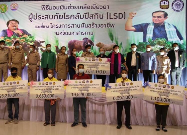 รมช.เกษตรและสหกรณ์ มอบเงินชดเชยเยียวยากว่า 131 ล้านบาทให้กับเกษตรกรผู้ประสบภัยพิบัติ กรณีโรคลัมปี สกิน ในพื้นที่ จ.มหาสารคาม พร้อมชี้แจง โครงการ “สานฝัน สร้างอาชีพ ยกระดับรายได้เกษตรกร”