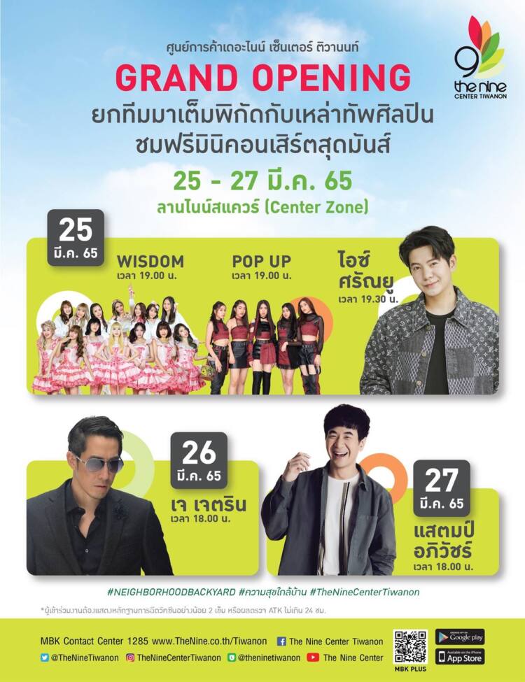 #THENINECENTERTIWANON #เดอะไนน์เซ็นเตอร์ติวานนท์ #NeighborhoodBackyard #ความสุขใกล้บ้าน #Grandopening # #อ๊อฟปองศักดิ์ #เจเจตริน #แสตมป์อภิวัชร์ #IdolExchange #Wisdom #POPUP #lightingshow