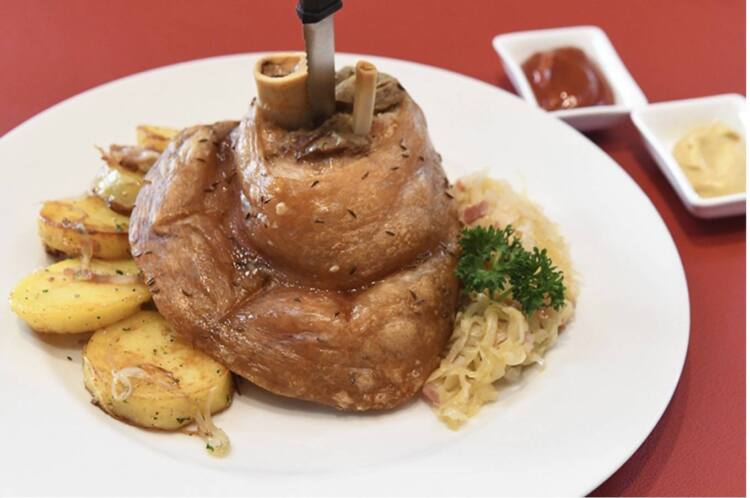 รวมถึงไฮไลท์ ขาหมูเยอรมัน ที่เป็นขาหมูสูตรเพื่อสุขภาพ เพราะผ่านขบวนการทำกว่า 3 ชั่วโมง ด้วยเคล็ดลับที่ดีต่อสุขภาพหรือเรียกว่า ขาหมูรีดมัน ด้วยวิธีการหมักกับเครื่องเทศอย่างดีนำไปต้มจนสุกแล้วนำเข้าเตาอบ แถมยังมีการเพิ่มเบียร์เยอรมันเข้าไปผสมผสานเพิ่มความหอม และเพิ่มความนุ่มเป็นพิเศษ รับรองได้ว่าไม่เหมือนใคร การันตีความอร่อยด้วยการโทรจองล่วงหน้า จะได้ทานขาหมูเยอรมันที่อร่อยเลิศ กรอบนอก นุ่มใน และกรอบนาน อร่อยได้อย่างแน่นอน เสิร์ฟพร้อมด้วย น้ำจิ้ม 3 สูตรเด็ด สุดแซ่บเวอร์ โดยเฉพาะน้ำจิ้มซีฟู้ด
